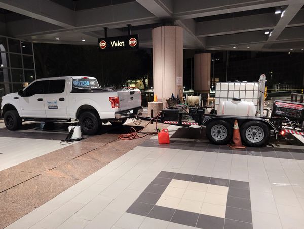 Full Treatment of concrete and using the Surface Cleaner to clean the concrete.
